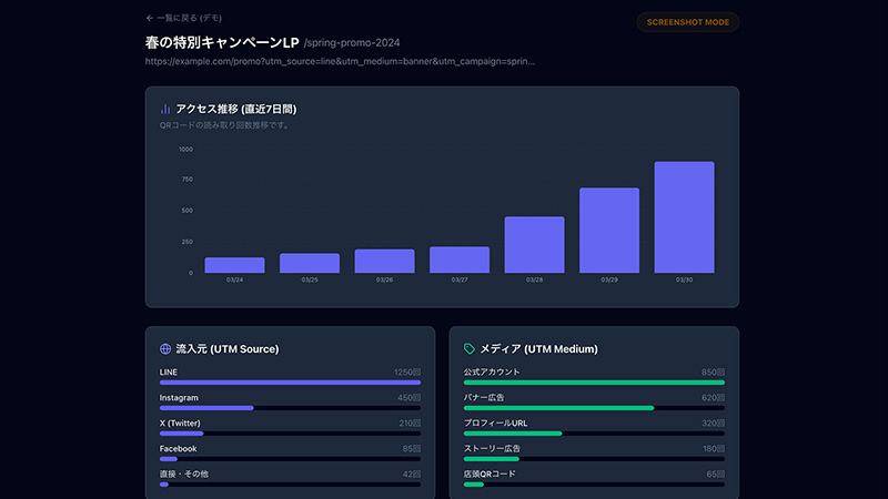 QRコードやリンクがクリックされると、ダッシュボードに数字が表示されます。「どの施策が効果的か」がすぐに分かります。